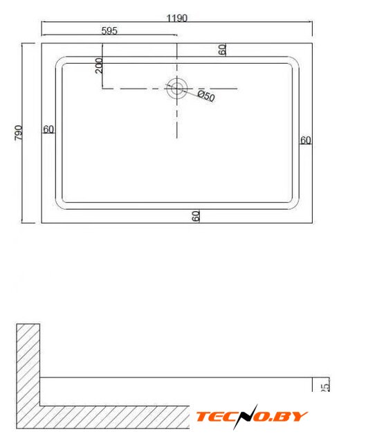 прямоугольный, 120x80 см, акрил, низкий, 17 см, цвет: белый