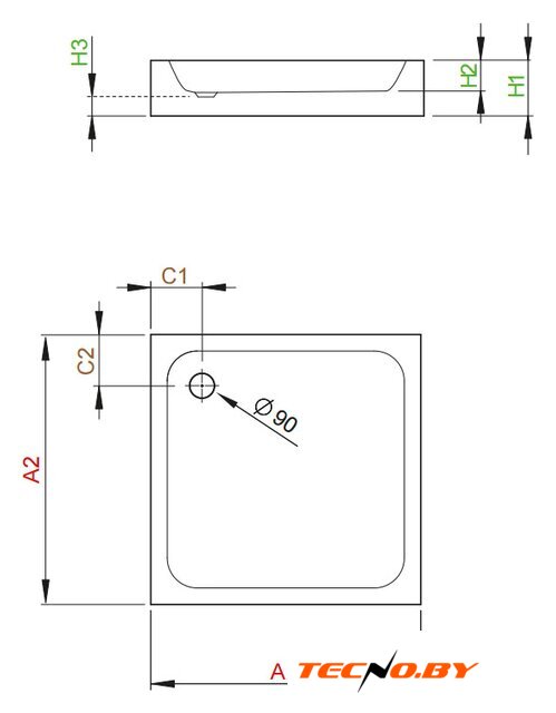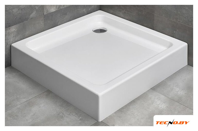 квадратный, 90x90 см, акрил, высокий, 15 см, противоскользящее покрытие дна, цвет: белый