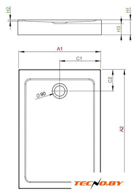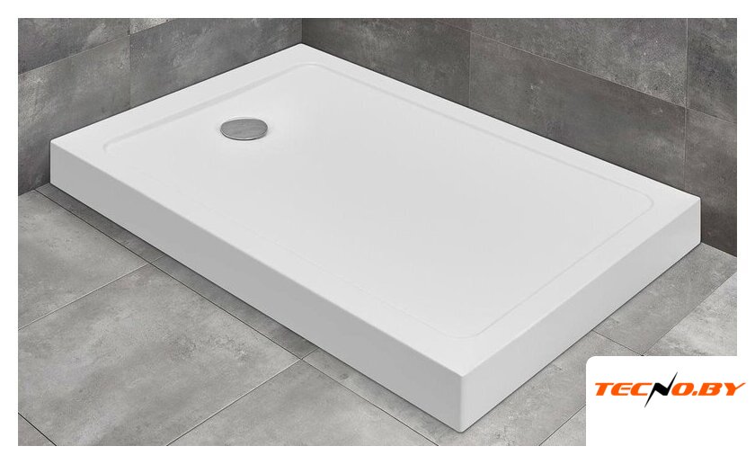 прямоугольный, 100x90 см, искусственный камень, низкий, 2.5 см, противоскользящее покрытие дна, цвет: белый