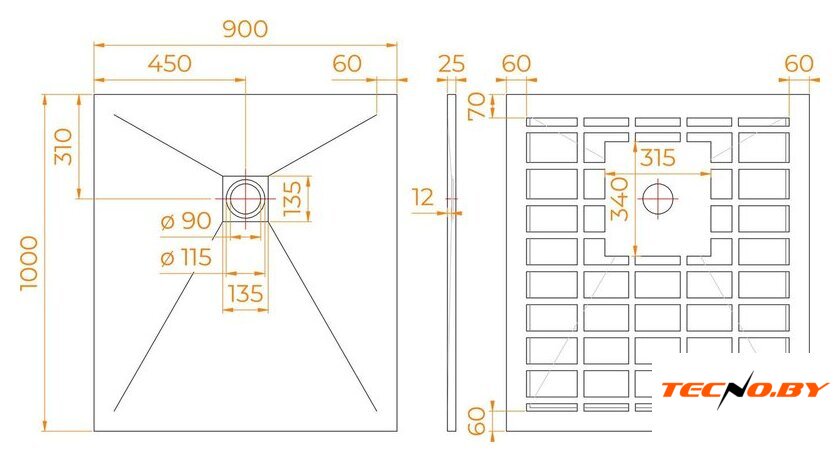 прямоугольный, 120x90 см, акрил, низкий, 12 см, цвет: белый