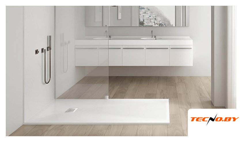 прямоугольный, 170x80 см, стеклокомпозит, низкий, 3.5 см, цвет: белый