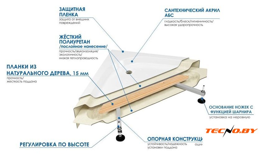 пятиугольный, 100x100 см, акрил, низкий, 15 см, противоскользящее покрытие дна, цвет: белый