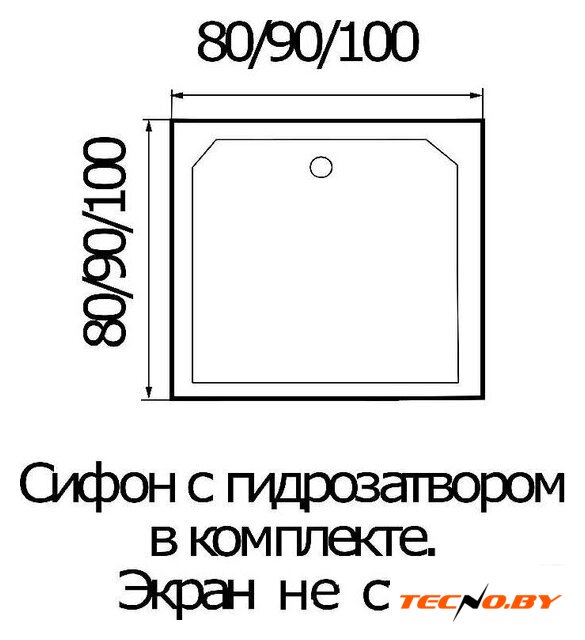 квадратный, 80x80 см, акрил, низкий, 15 см, противоскользящее покрытие дна, цвет: белый
