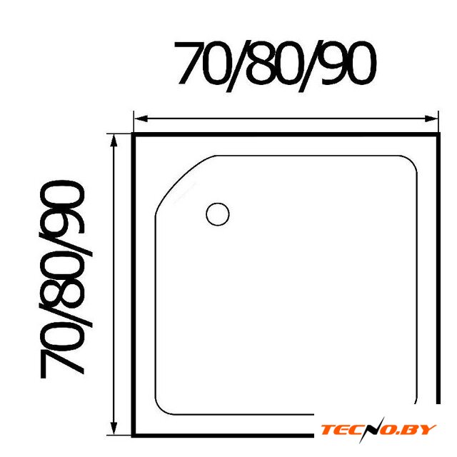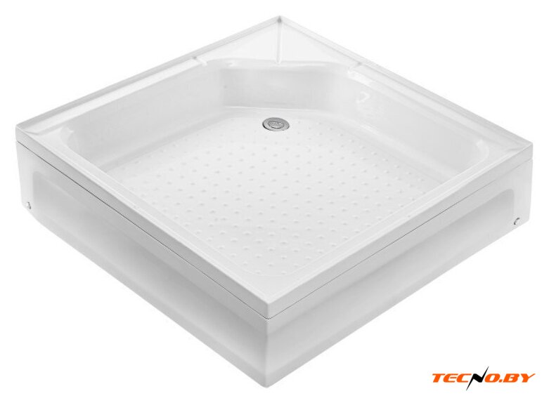 закруглённый, 80x80 см, акрил, высокий, 43 см, встроенное сиденье, противоскользящее покрытие дна, цвет: белый