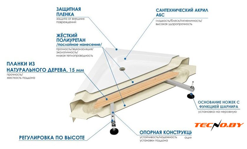 квадратный, 100x100 см, акрил, высокий, 24 см, противоскользящее покрытие дна, цвет: белый