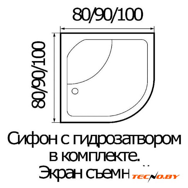 закруглённый, 80x80 см, акрил, высокий, 30 см, противоскользящее покрытие дна, цвет: белый