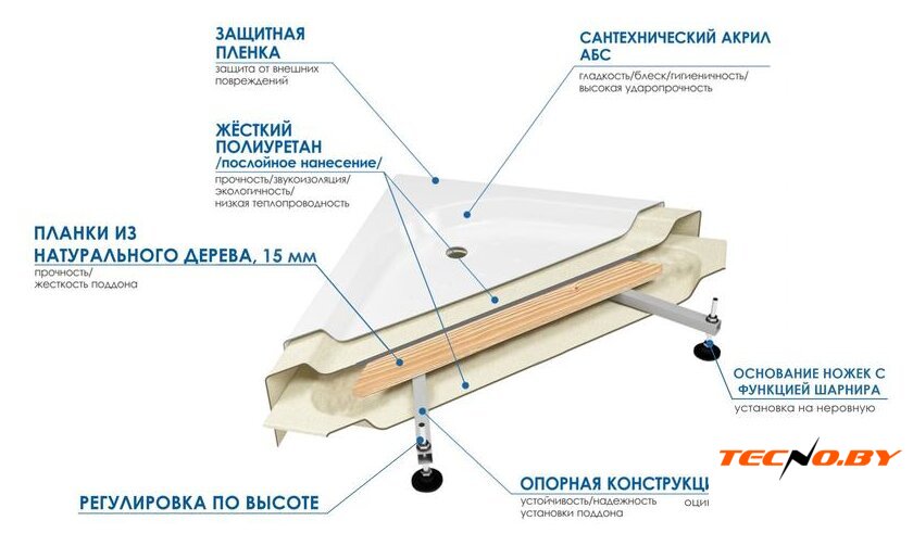 пятиугольный, 90x90 см, акрил, высокий, 15 см, цвет: белый