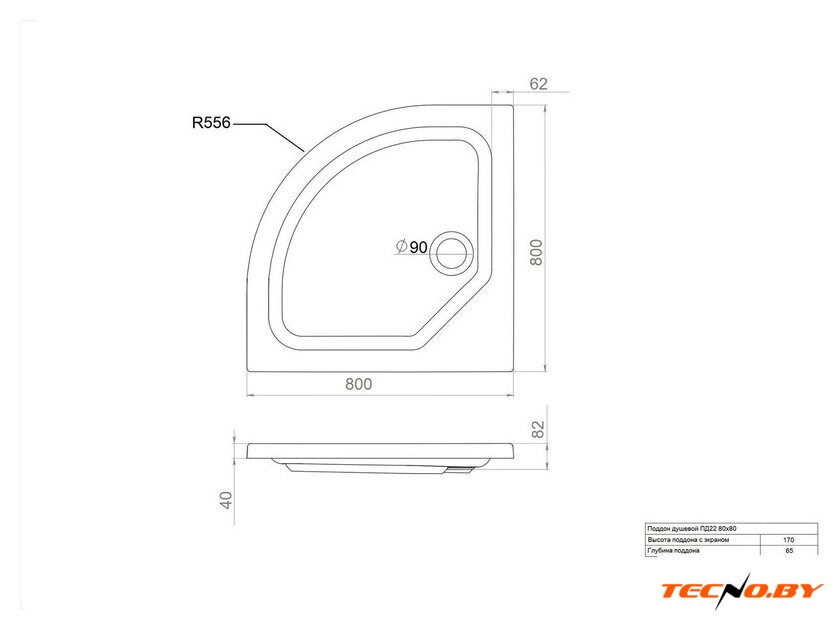 закруглённый, 90x90 см, сталь, низкий, 16 см, цвет: белый
