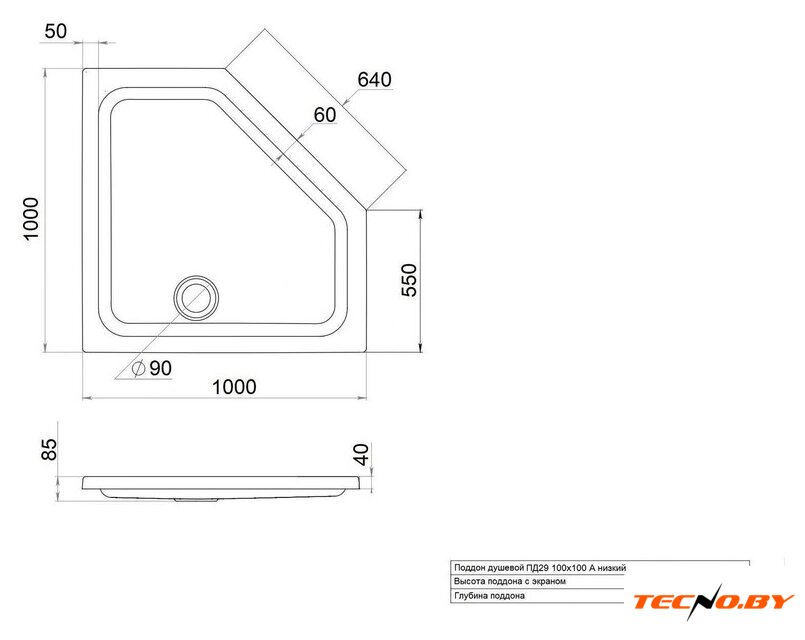 пятиугольный, 89x89 см, акрил, низкий, 17 см, цвет: белый