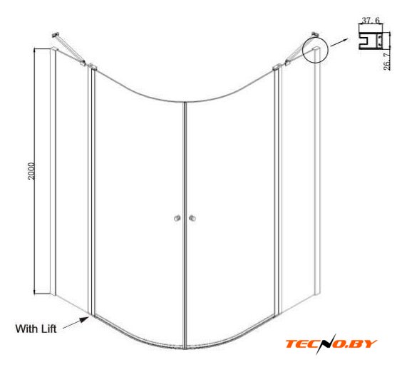 Высота уголка составляет 200 см, что обеспечивает комфортную высоту для большинства пользователей. С шириной и глубиной 90 см, он подходит для одной персоны. Конструкция не предполагает наличие поддона и сифона в комплекте, что позволяет вам выбрать подходящие элементы в соответствии с вашими предпочтениями.