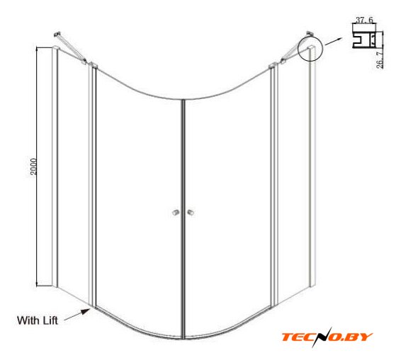 Высота конструкции составляет 200 см, что позволяет свободно использовать душевой уголок людям разного роста. Ширина и глубина уголка — по 100 см, обеспечивающие достаточно пространства для комфортного принятия душа. Этот душевой уголок рассчитан на одного пользователя, что делает его идеальным для индивидуального использования.