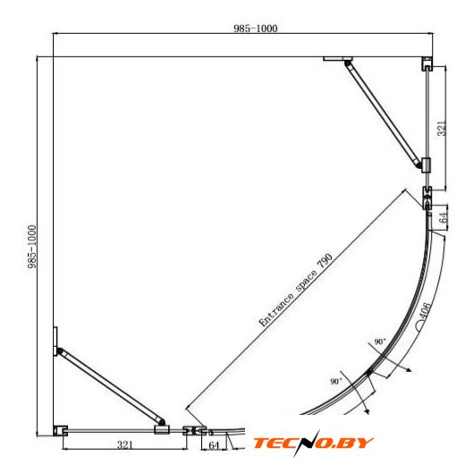 Этот душевой уголок оснащен распашными дверями с шириной входа 79 см, предлагая достаточно места для комфортного входа и выхода. Установленный в углу, он экономит пространство, а его закругленный низкий поддон делает вход легким и беспрепятственным. Черты минимализма и функциональности делают его идеальным выбором для любой ванной комнаты.