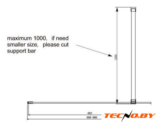 С шириной 90 см и высотой 200 см душевая стенка идеально вписывается в большинство ванных комнат, предлагая комфорт и свободу движения. Размер входа в 100 см способствует удобству использования и делает вход/выход более просторным и безопасным.