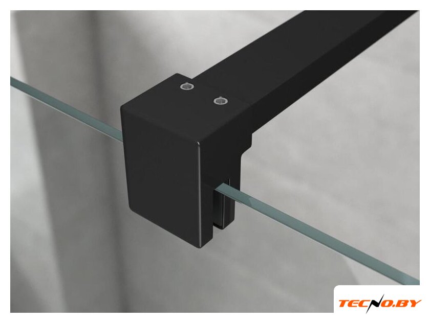 Эта душевая стенка монтируется прямо к стене, обеспечивая надежную установку и стабильность. Основной материал — высококачественное закаленное стекло толщиной 8 мм, которое гарантирует прочность и долговечность. Прозрачное стекло оригинально обрамлено профилем из матового черного алюминия, подчеркивающим современную эстетику.