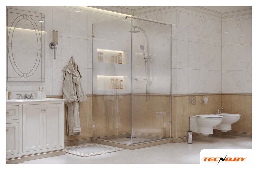 Душевой уголок предназначен для удобной установки в угол ванной комнаты, обеспечивая оптимальное использование пространства. Конструкция с правым расположением устанавливается к двум стенам, что делает его идеальным выбором как для небольших, так и для крупных ванных комнат. Благодаря отсутствию поддона, вы можете легко адаптировать установку под свои нужды, сочетая с любыми напольными покрытиями и системами слива.