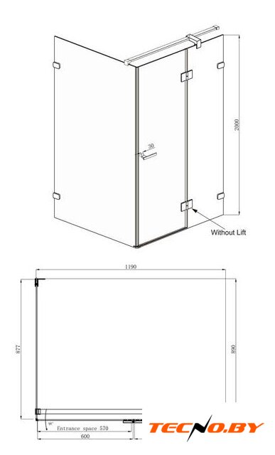 При конструкции на основе двух стен, данная модель особо удобна для небольших помещений. Прямоугольная форма душевого уголка и отсутствие поддона дают возможность гибкой адаптации к интерьеру вашего санузла. В комплект входит сифон, что обеспечивает простоту в установке и удобство в эксплуатации.