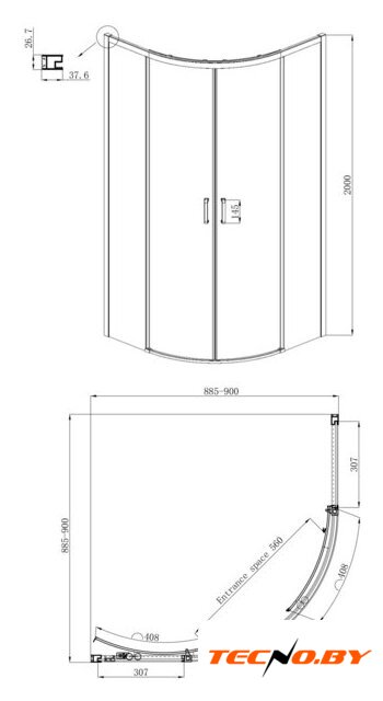 Главной особенностью конструкции этого душевого уголка является раздвижной механизм дверей, обеспечивающий экономию пространства и комфортный доступ с шириной входа 56 см. Уголок предназначен для монтажа в угол, что позволяет функционально использовать пространство в ванной комнате. Форма поддона, хотя и не входит в комплект, подразумевает закругленный дизайн, что добавляет стильности всей конструкции. 🚿