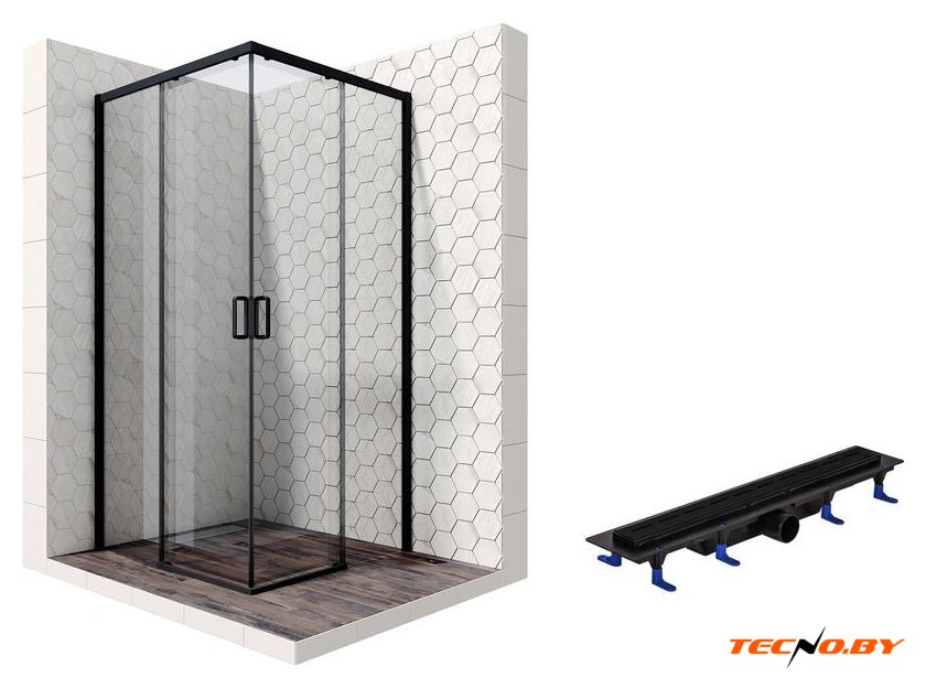 Раздвижные двери обеспечивают ширину входа в 47 см, что идеально подходит для удобного и быстрого доступа в душевую зону. Черный профиль подчеркивает строгость и стильность дизайна, делая акцент на качество и долговечность. Все материалы подобраны с заботой о вашем комфорте и эстетическом удовольствии.