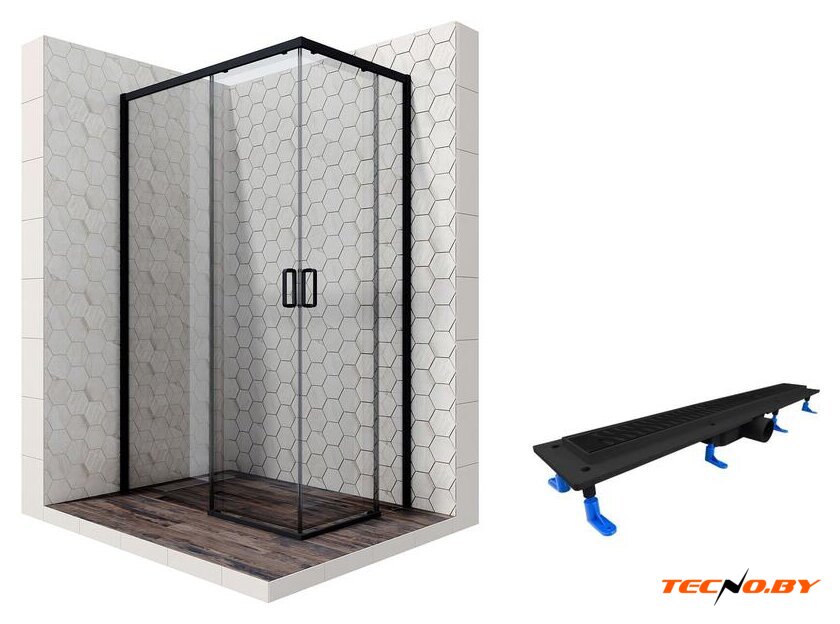 Элегантный и сдержанный черный профиль прекрасно сочетается с прозрачным стеклом, создавая современный и стильный облик, который легко дополнит любой интерьер ванной комнаты. Прямоугольная форма поддона без лишних деталей делает дизайн минималистичным и функциональным, максимально подчеркивая простоту линий.