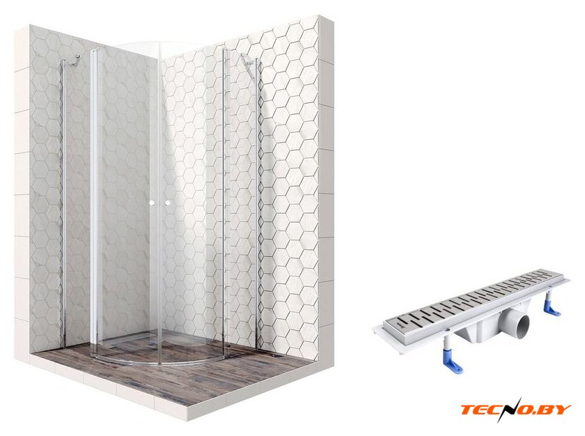 Двери душевого уголка распашные, что обеспечивает удобное пользование и максимальное пространство для входа, равное 79 см. Это особенно удобно для людей с разной комплекцией, так как позволяет свободно входить и выходить, не испытывая дискомфорта. Душевой уголок устанавливается в угол, прилегая к двум стенам, что является идеальным решением для экономии пространства.