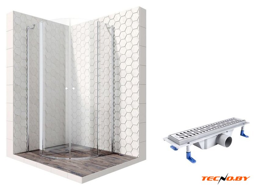 Двери душевого уголка являются распашными, что обеспечивает легкий и удобный доступ внутрь. Ширина входа составляет 79 см, предлагая достаточно места для свободного входа и выхода. Закругленная форма поддона добавляет элегантности и комфорта, позволяя воде эффективно стекать в сифон. Обратите внимание, что сам поддон не включен в комплект, что дает вам свободу выбора подходящего по дизайну и материалам поддона.