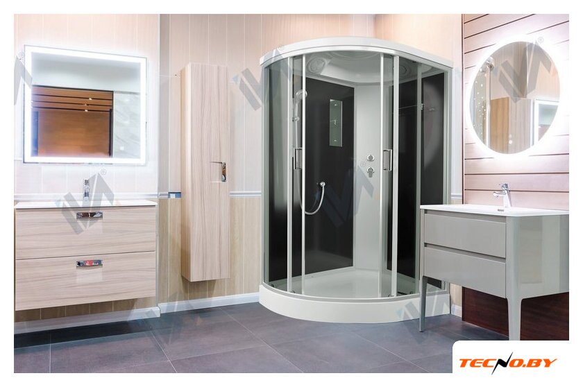 В комплект душевой кабины входит надежный поддон, который обеспечивает прочное основание для установки всей конструкции. Вес кабины составляет 79 кг, что делает ее достаточно устойчивой.
