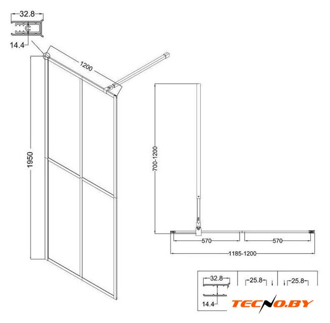 душевая стенка, ширина 120 см