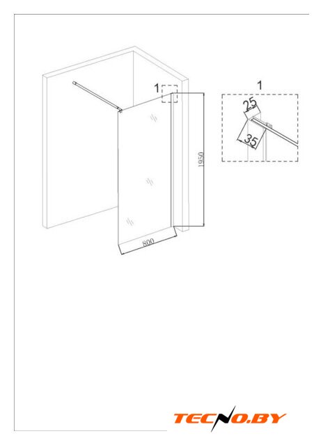 душевая стенка, ширина 80 см