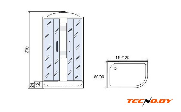 С высотой 210 см, шириной 80 см и глубиной 120 см, эта душевая кабина прекрасно вписывается даже в самые ограниченные пространства, оставляя достаточно места для других элементов интерьера. Минималистичный дизайн и функциональность делают ее универсальным решением для любой ванной комнаты.