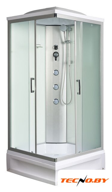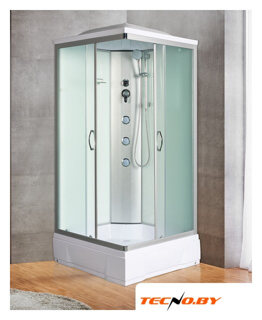 Душевая кабина оснащена тропическим душем, который создаст ощущение натурального дождя, и ручной душевой лейкой для более целенаправленного использования. Три боковые форсунки обеспечивают массажный эффект, что поможет расслабиться после напряженного дня. Также предусмотрено удобное зеркало и полки для хранения необходимых принадлежностей.