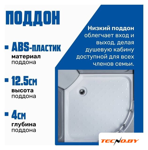Безопасность — один из ключевых аспектов, о которых помнили разработчики данной модели. Стенки и двери кабины изготовлены из закаленного стекла толщиной 4 мм, что гарантирует их высокую прочность и устойчивость к механическим повреждениям. Противоскользящее покрытие дна минимизирует риск поскользнуться при использовании, обеспечивая дополнительную защиту.