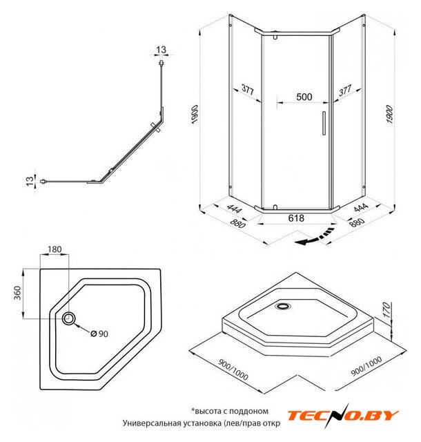 | Форма поддона | пятиугольный |
