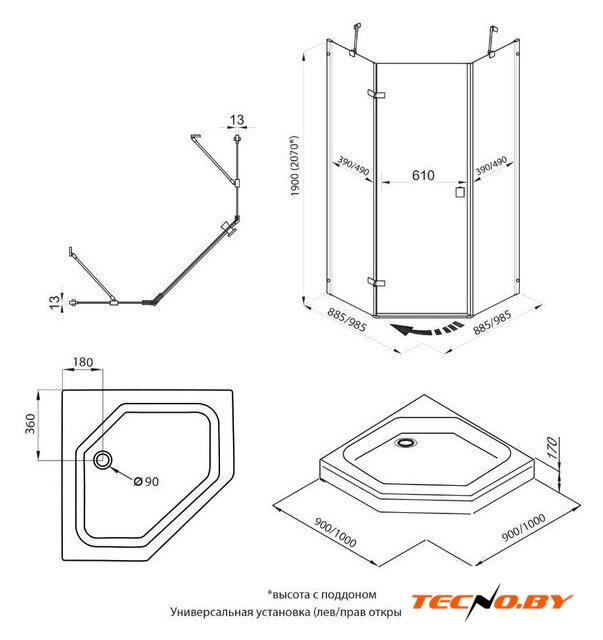 | Форма поддона | пятиугольный |