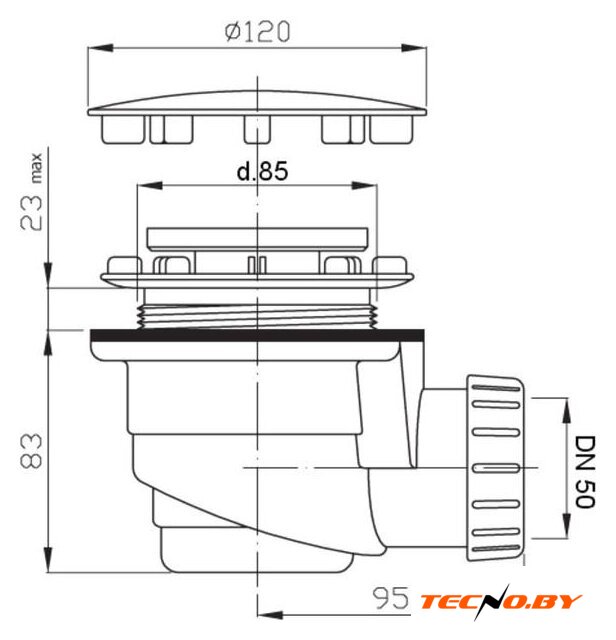 для душа, сталь, слив 50 мм, длина 65 мм, сухой затвор
