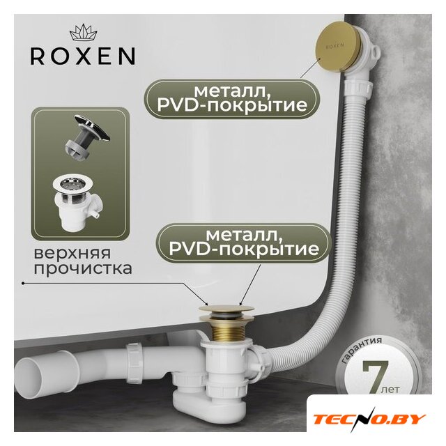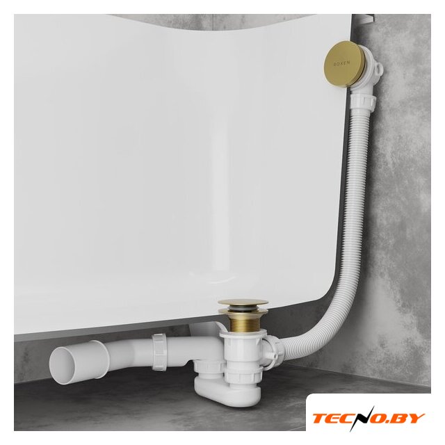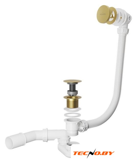 для ванны, трубный, пластик/латунь, слив 40 мм, труба 40 мм/50 мм, длина 680-890 мм, гидрозатвор, цвет крышки: золотистый