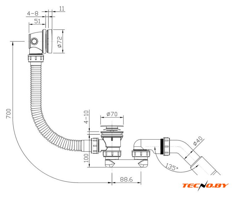 | Длина шланга системы перелива | 700 мм |