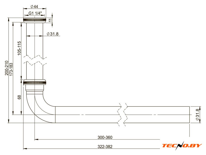 для умывальника, трубный, латунь, резьба 1 1/4", слив 32 мм, труба 32 мм, длина 270 мм, гидрозатвор, сливная решетка, цвет крышки: хром