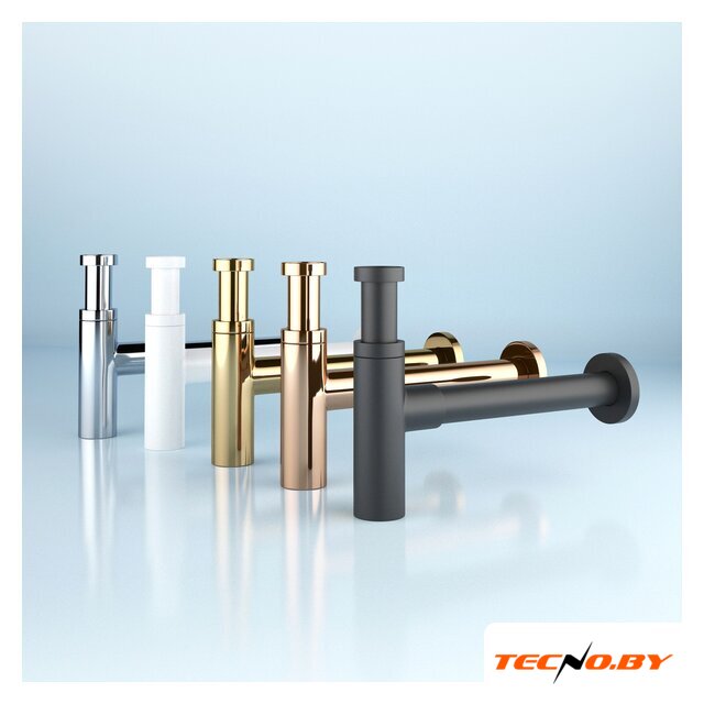 для умывальника, бутылочный, латунь, резьба 1 1/4", слив 32 мм, труба 32 мм, длина 350-365 мм, гидрозатвор, цвет крышки: матовый белый