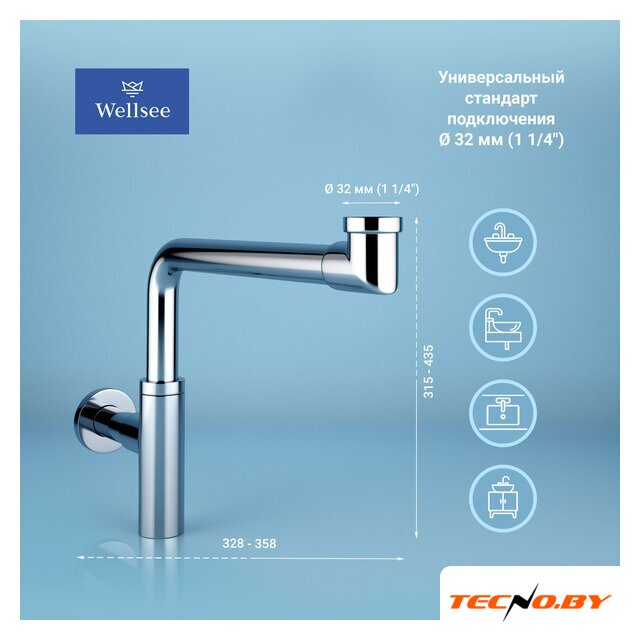 для умывальника, бутылочный, латунь, резьба 1 1/4", труба 32 мм, длина 346 мм, гидрозатвор