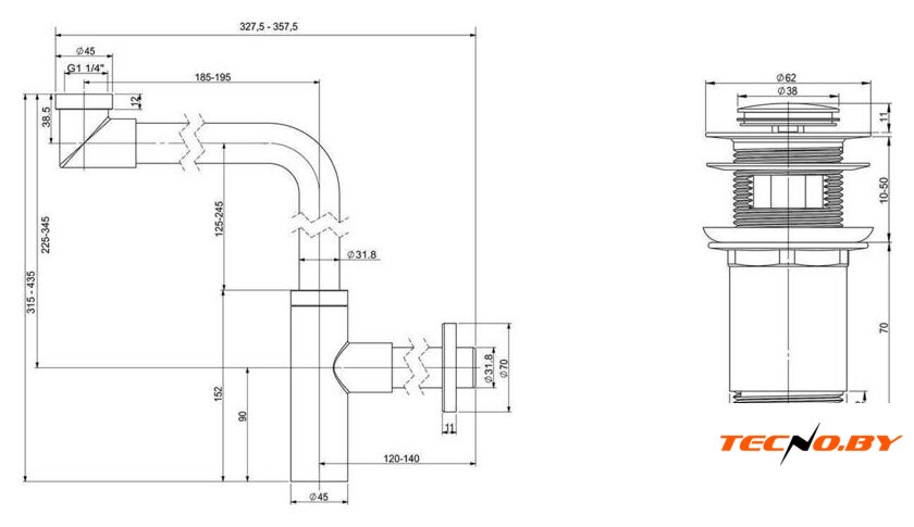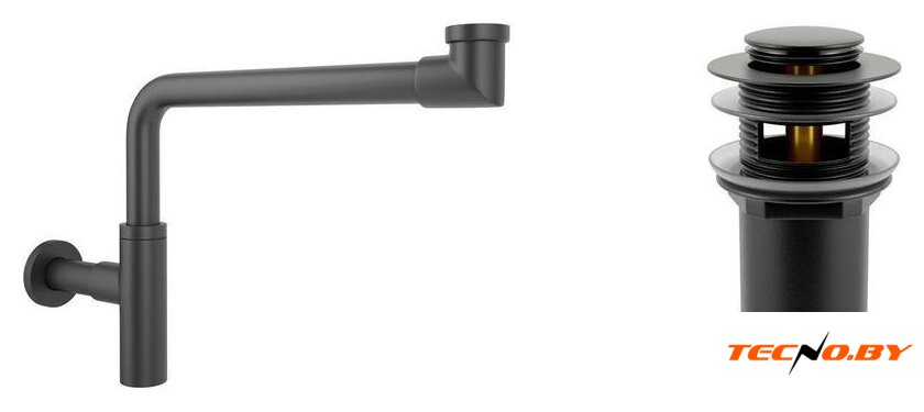 для ванны, трубный, пластик/латунь, слив 40 мм, труба 40 мм/50 мм, длина 680-890 мм, гидрозатвор, цвет крышки: матовый черный
