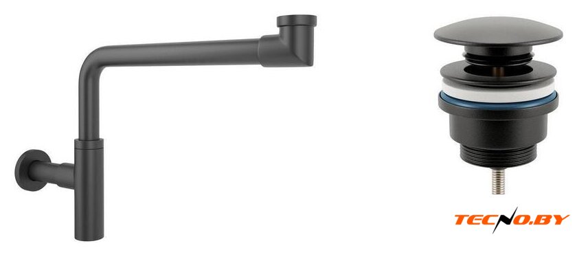для ванны, трубный, пластик/латунь, слив 40 мм, труба 40 мм/50 мм, длина 680-890 мм, гидрозатвор, цвет крышки: матовый черный