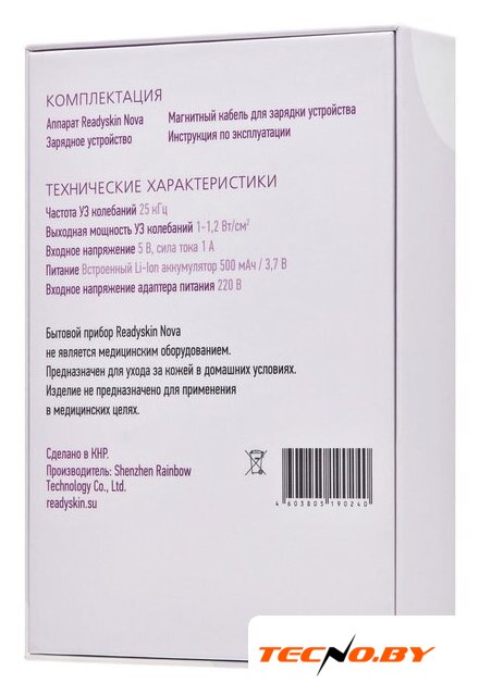 | Комплектация | Аппарат для уз-чистки Readyskin NovaАдаптер питанияКабель магнитной зарядкиРуководство по эксплуатации |
