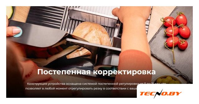 ломтерезка, 150 Вт, толщина ломтика до 15 мм, постоянный режим, 1 скорость