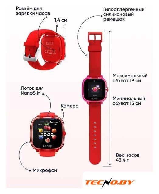 синхронизация с Android/iOS, экран TFT 1.3", поддержка SIM-карты: nano-SIM, GPS, корпус: пластик, ремешок: силикон
