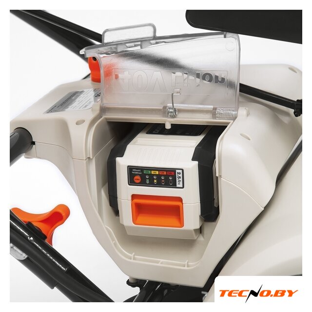 ручной, аккумуляторный двигатель, захват 51x25 см, выброс на 6 м