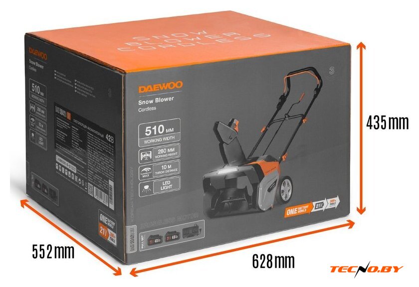 аккумуляторный двигатель, захват 51x28 см, выброс на 10 м