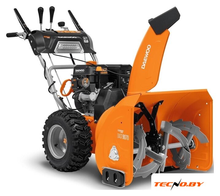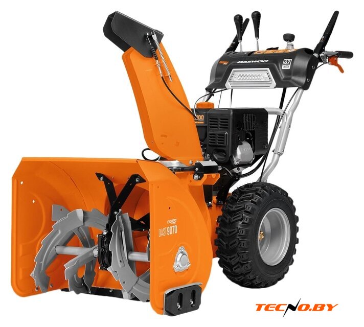 самоходный, бензиновый двигатель 9 л.с., захват 67x55 см, выброс на 15 м