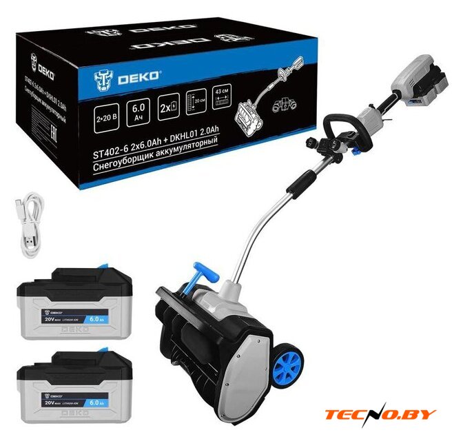 | Комплектация | - Снегоуборщик (готов к сборке) – 1 шт.- Аккумулятор 6,0 Ач – 2 шт.- Двойное зарядное устройство – 1 шт.- Комплект фар – 1 шт.- Руководство по эксплуатации – 1шт. |