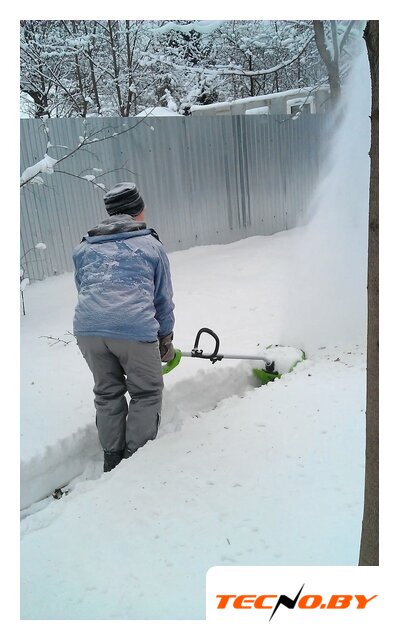ручной, аккумуляторный двигатель, захват 43x20 см, выброс на 7 м