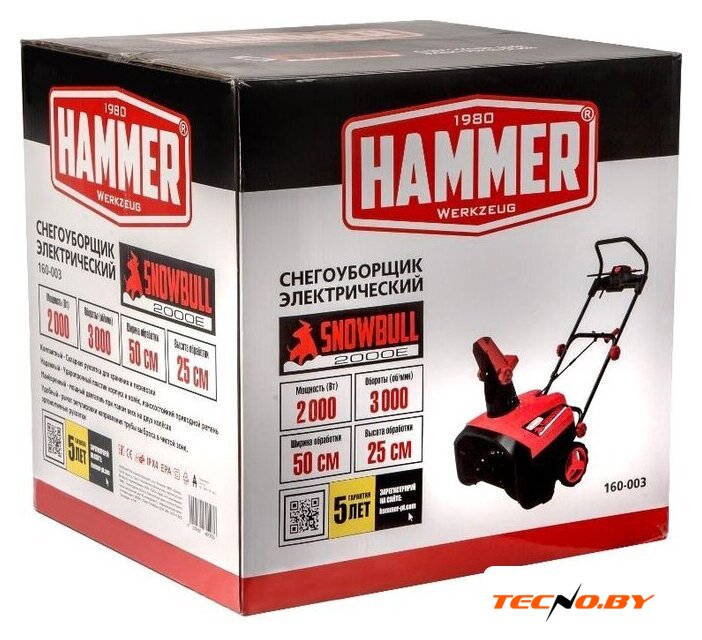 ручной, электрический двигатель 2500 Вт, захват 46x25 см, выброс на 9 м